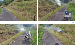 そして今日の午後。Mが数日前に草刈りをした、県道に至る道路の草焼き。昨日から、手伝うと約束をしていた作業である。