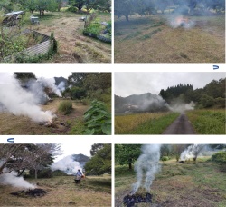 はじめに「大傾斜」と呼ぶ場所の草焼き。大傾斜は4日にわたって草刈りをしていて、草刈り後の乾燥具合を見ながら焼くことになる。昨日も焼き、そして今日は2日目。大傾斜の中程の部分を焼くことにした。
