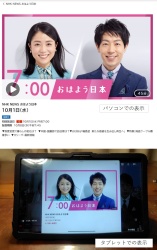 試しに、デスクトップパソコンとタブレットで、10月1日朝7時のニュースを再生することができるか,試みたのが上の写真。