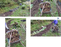 Mは思ったより量が少ないというが、それでも一輪車に2台は採れた。自家消費分としては充分である。