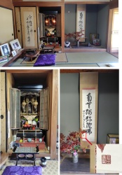 Kが実施したのはMの指示を受けて、父親が書いた軸の用意と仏壇の掃除のみである。 父親が書いた軸とは写真下段右のもの。父親が77歳の時書いたと署名してある。