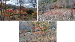 母屋周辺では一番低い場所になり、Mが畑として野菜を作ったり、柿などの果樹を植えている場所の土手になる。