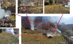 草刈りはしたものの、その後の草焼きができず放置されたままになり、さらにその上に落ち葉が重なり、もはや焼くに焼かれずという状態の場所がある。