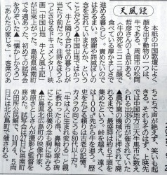 中に入って、ソファーに座ると、女性事務員がコーヒーを入れてくれる。前のテーブルには新聞が積んであって、見ると新聞名が中国新聞。