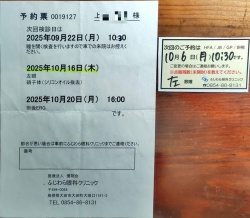 先月25日の診察日に、“安静が解除”されて以降 こちら→(2025/8/25)